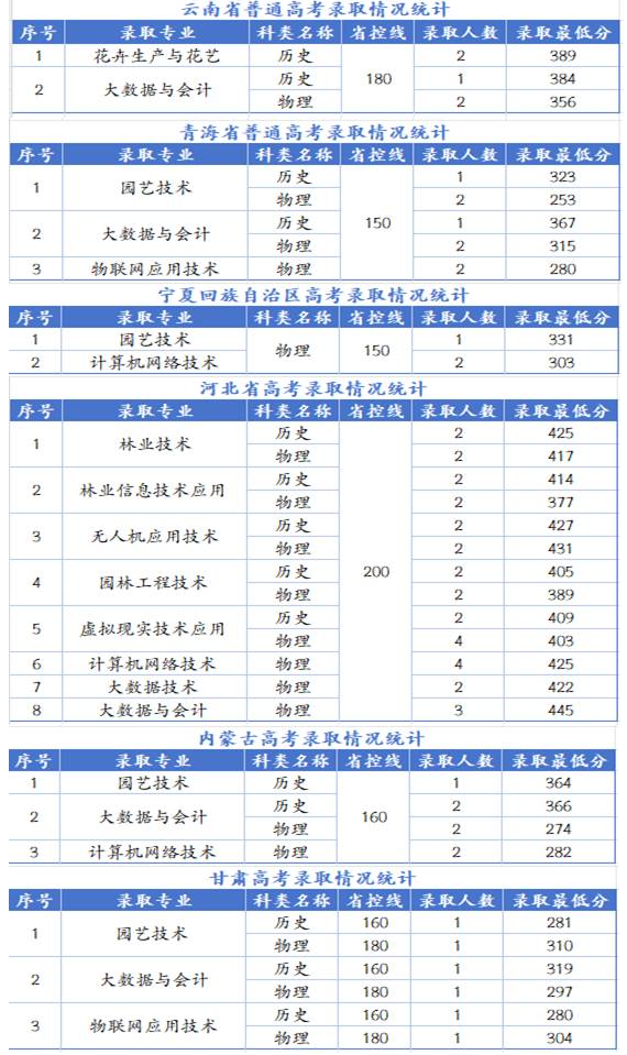 山西林业职业技术学院 2025年录取进程公告(二)